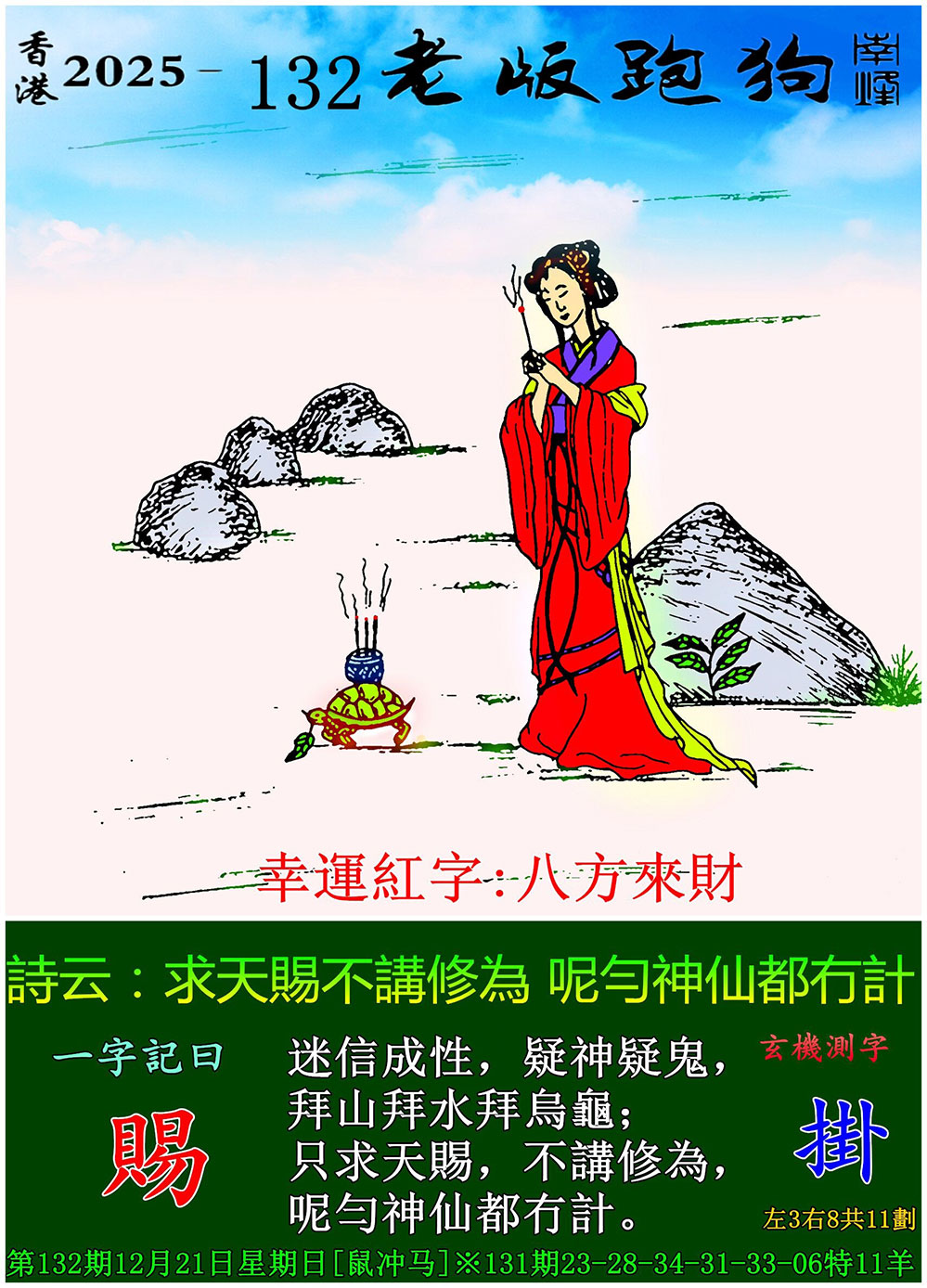 主题 :132期老版跑狗一字記之曰:【賜】 玄機測字:《掛》