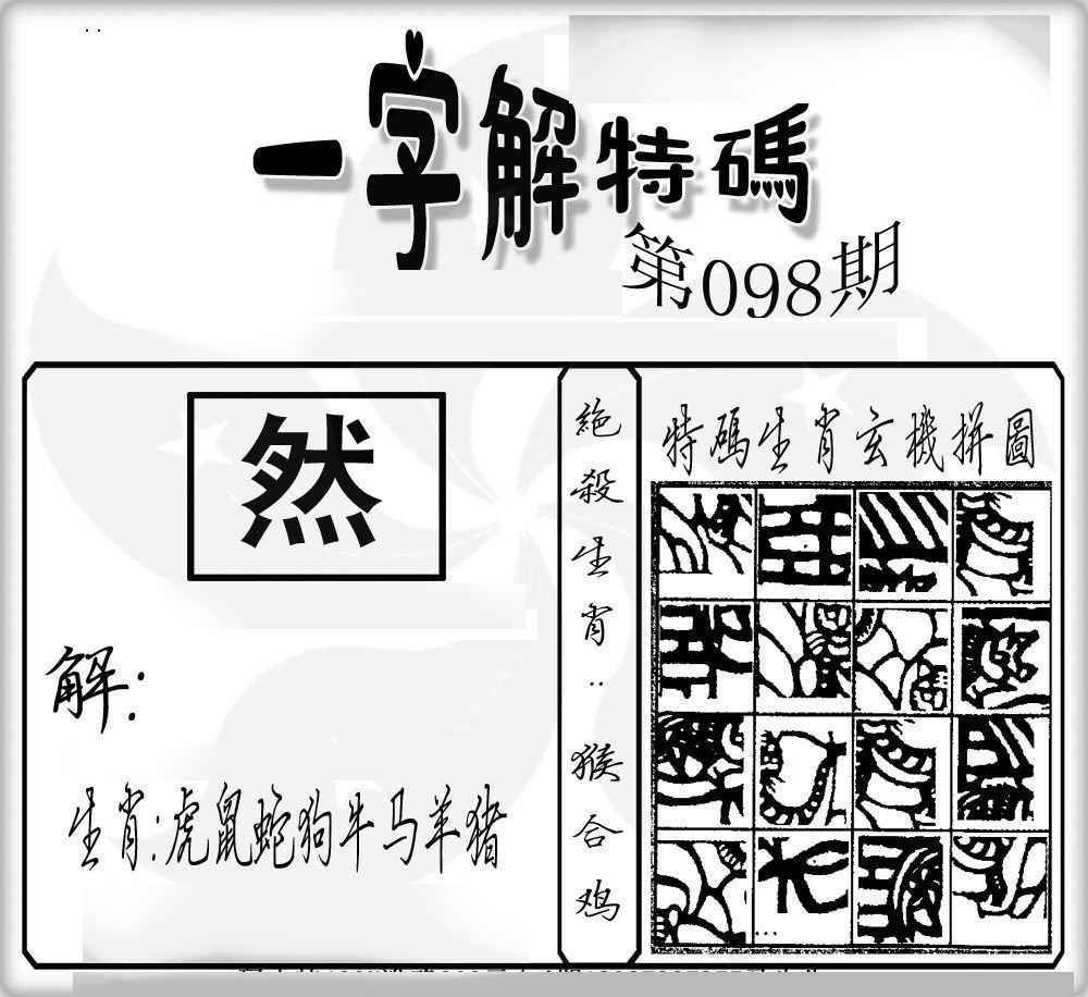 主题 :098期:一字解特码