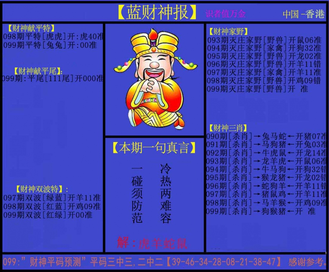 | 主题 :099期:蓝财神 |