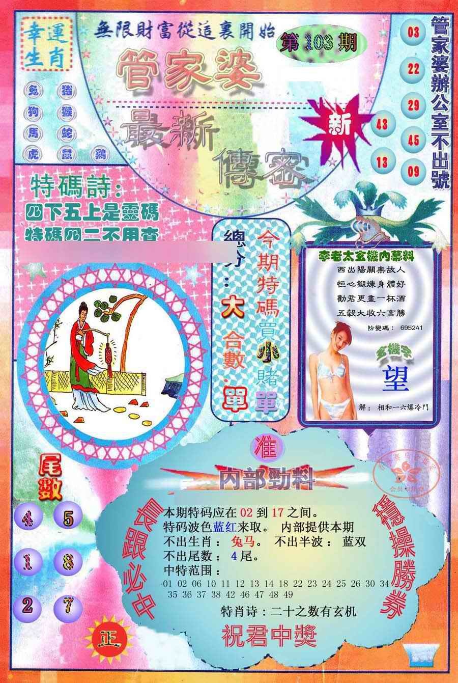 103期:最新管家婆传密