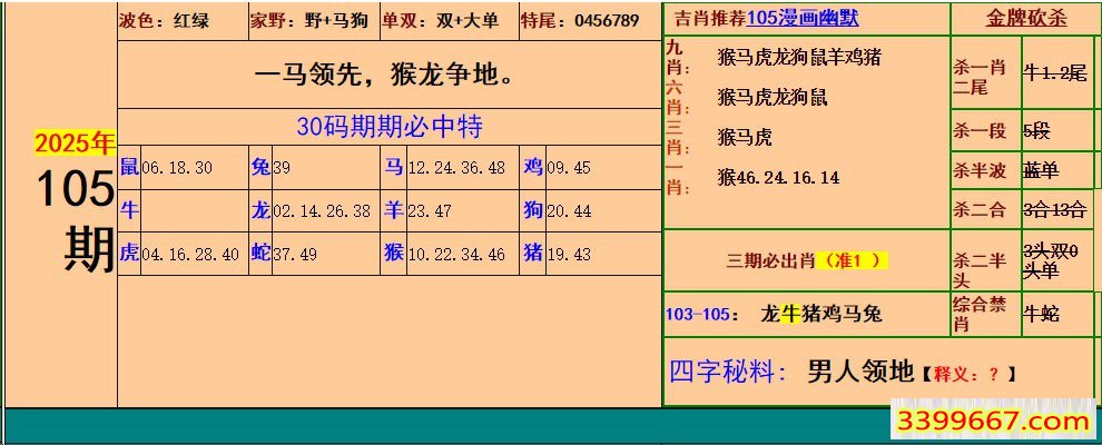 | 主题 :105期:小鱼儿30码期期中+幽默猜测 |