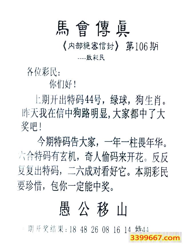 主题 :106期:首发推荐:≮馬會傳眞≯→(香港正版) |