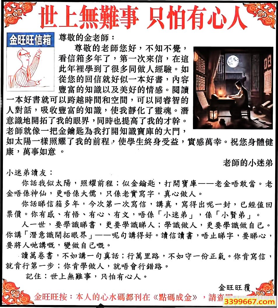 | 主题 :118期:金旺旺信箱彩民推荐→→《世上無難事 只怕有心人》 |