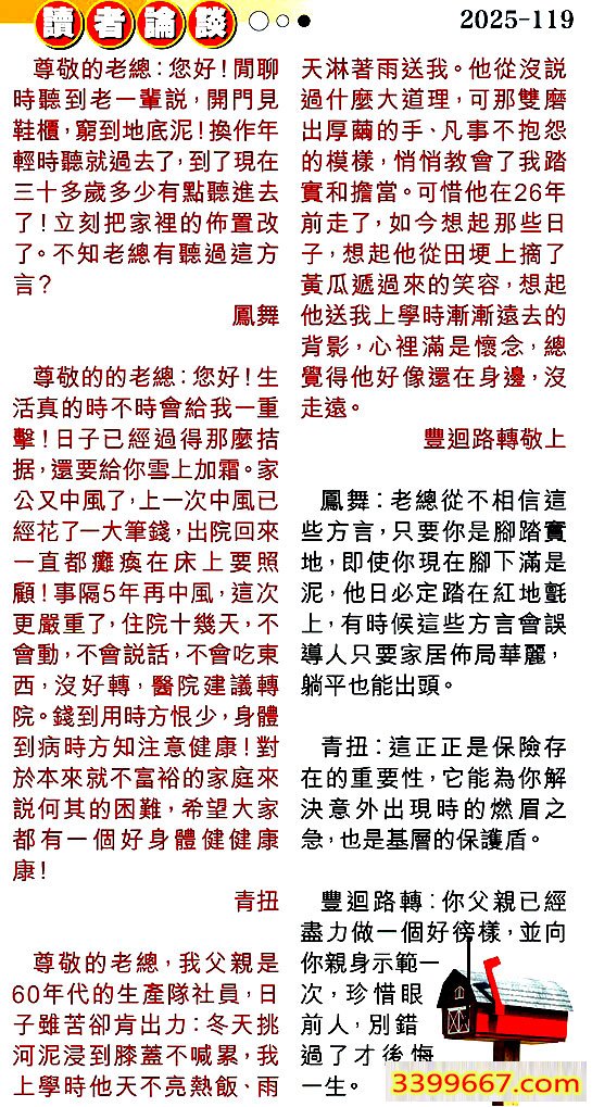 | 主题 :119期:彩民推荐〖貼信讀者論壇〗 |