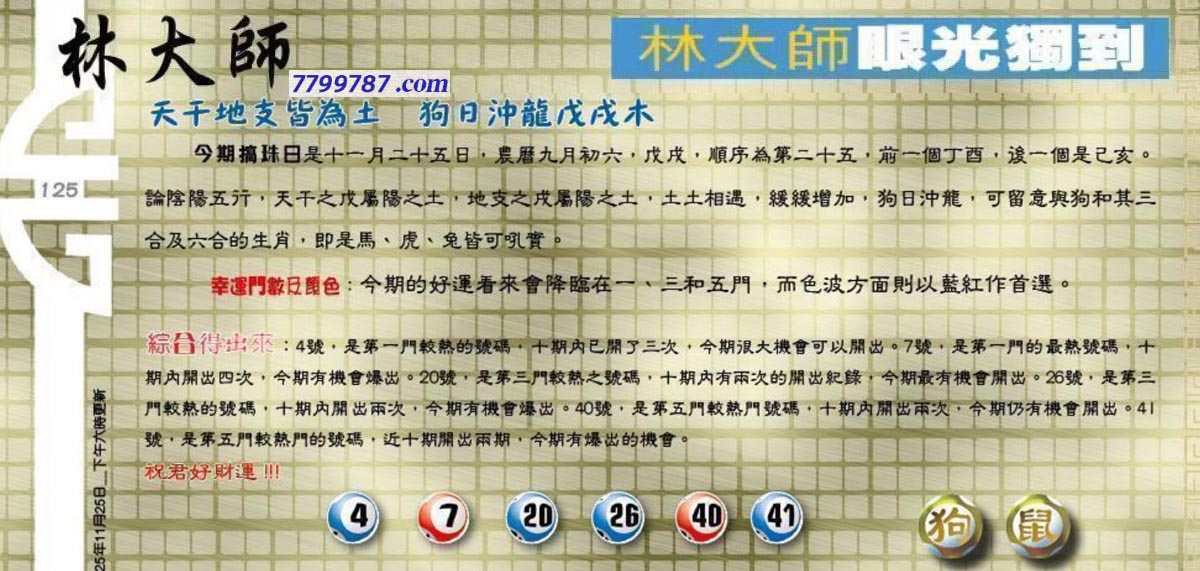 | 主题 :125期:六合皇金句/老总论码/萧公子/林大师/五行夺码/老总信箱截 |