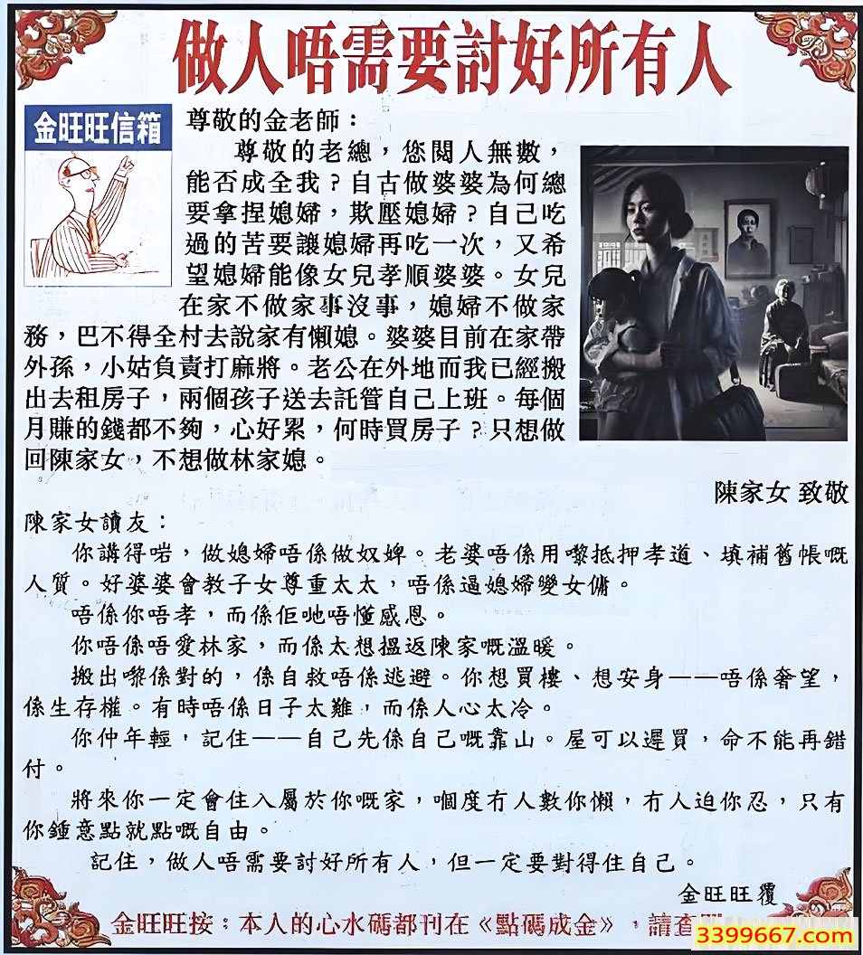 | 主题 :126期:金旺旺信箱彩民推荐→→《做人唔需要討好所有人》 |
