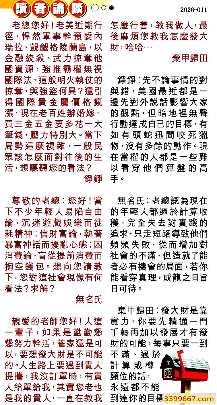 | 主题 :011期:彩民推荐〖貼信讀者論壇〗 |