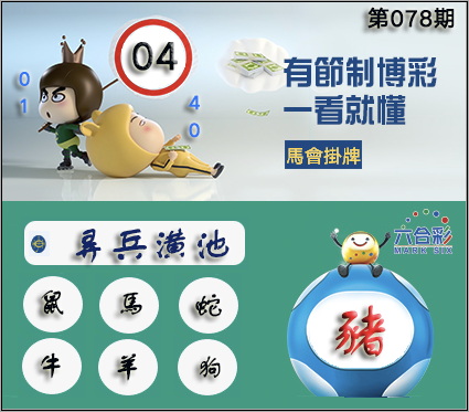 078期正版彩图挂:04 爆:猪 挂牌成语:弄兵潢池 挂牌出肖:鼠马蛇牛羊狗