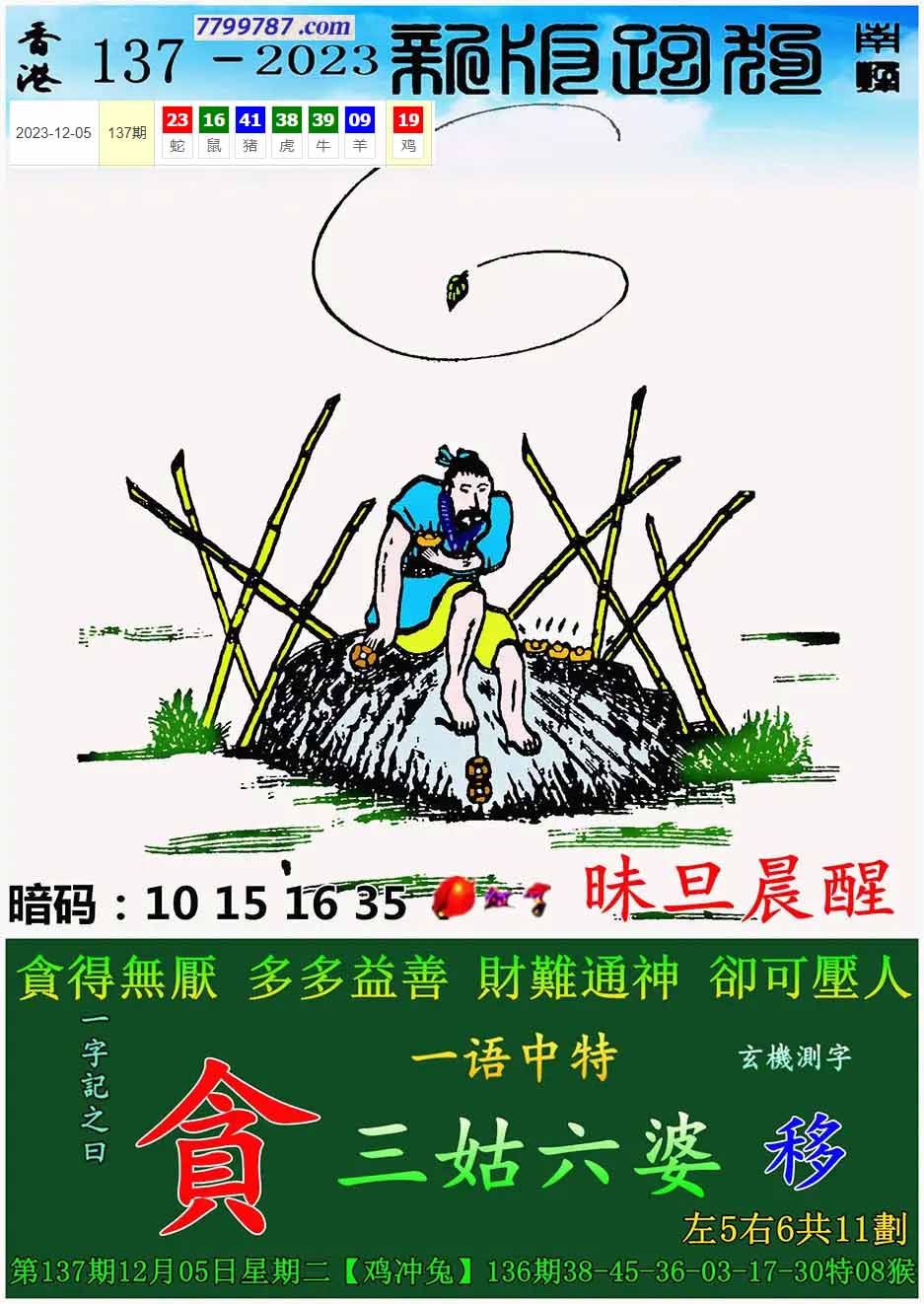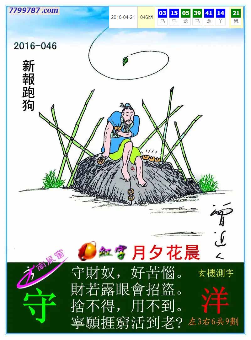 主题 :110期:新版跑狗一字記之曰【錢】 玄機測字:【增】 |