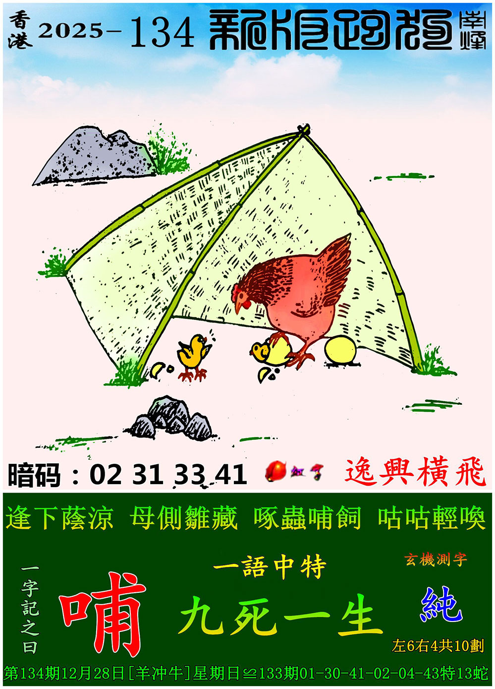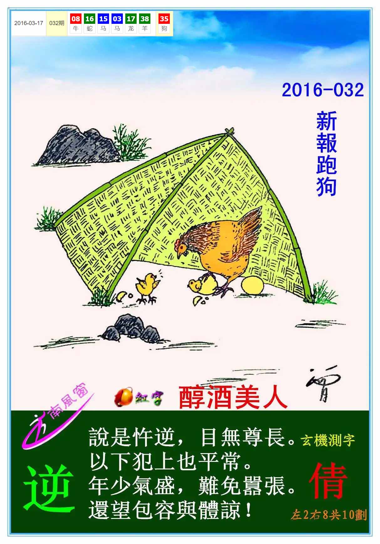 主题 :134期:新版跑狗一字記之曰【哺】 玄機測字:【純】