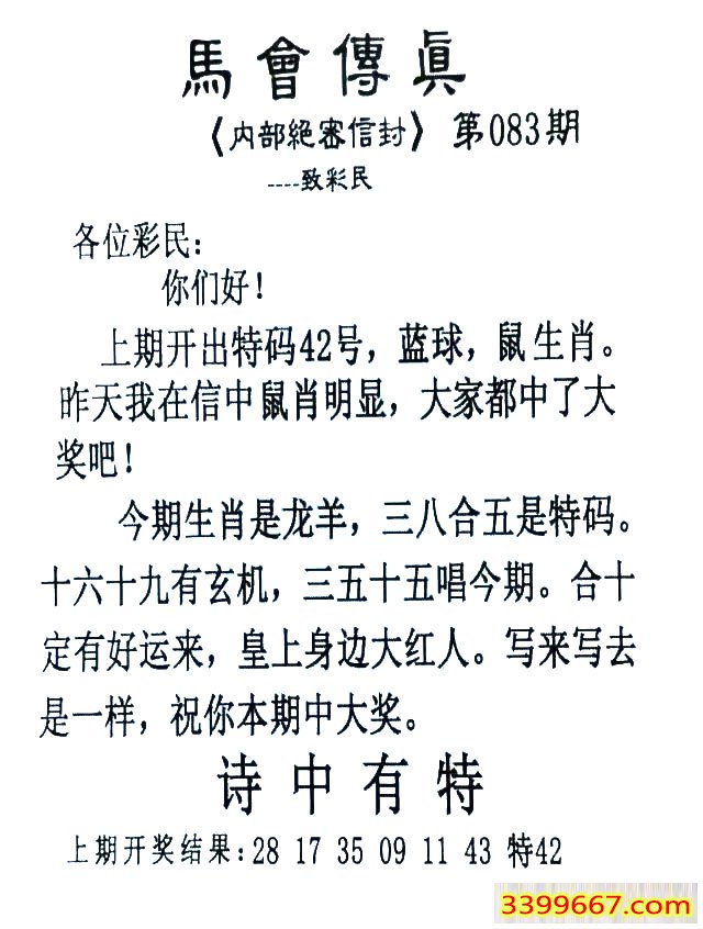| 主题 :083期:首发推荐:≮馬會傳眞≯→(香港正版) |