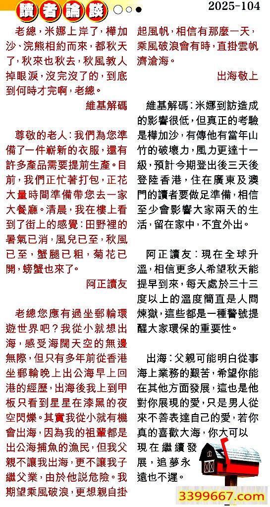 主题 :104期:彩民推荐〖貼信讀者論壇〗