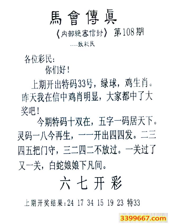 108期:首发推荐:≮馬會傳眞≯→(香港正版)