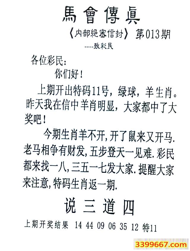 | 主题 :013期:首发推荐:≮馬會傳眞≯→(香港正版) |