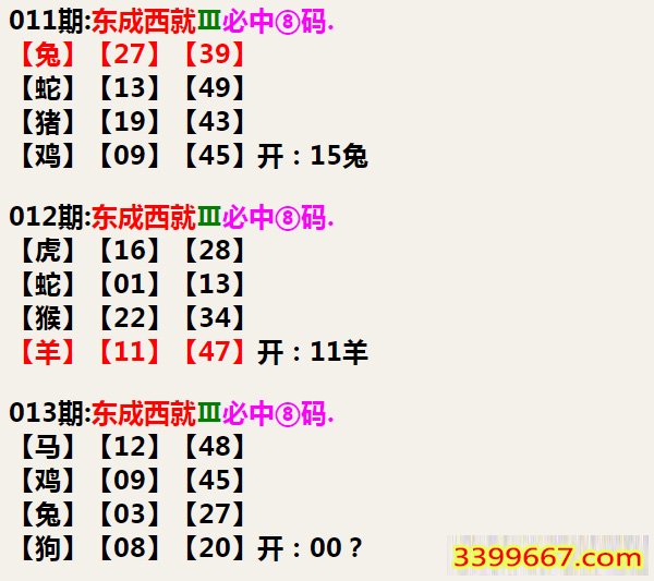 | 主题 :013期:东成西就Ⅲ必中⑧码 |