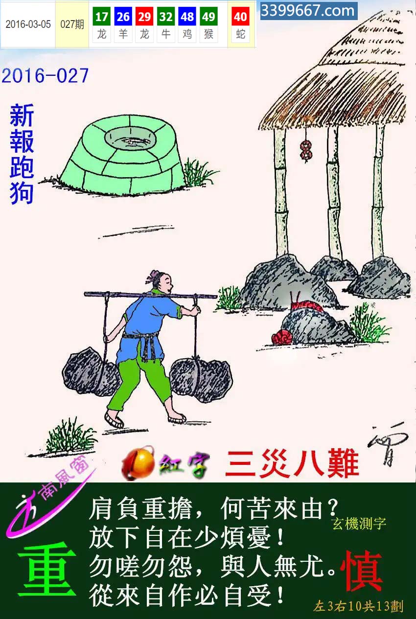 | 主题 :012期:新版跑狗一字記之曰【擔】 玄機測字:【俠】 |