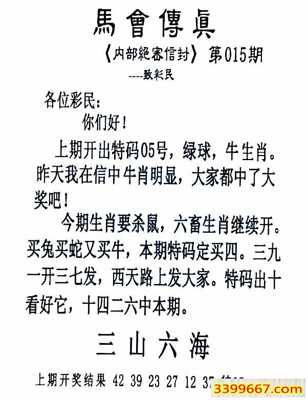 015期:首发推荐:≮馬會傳眞≯→(香港正版)