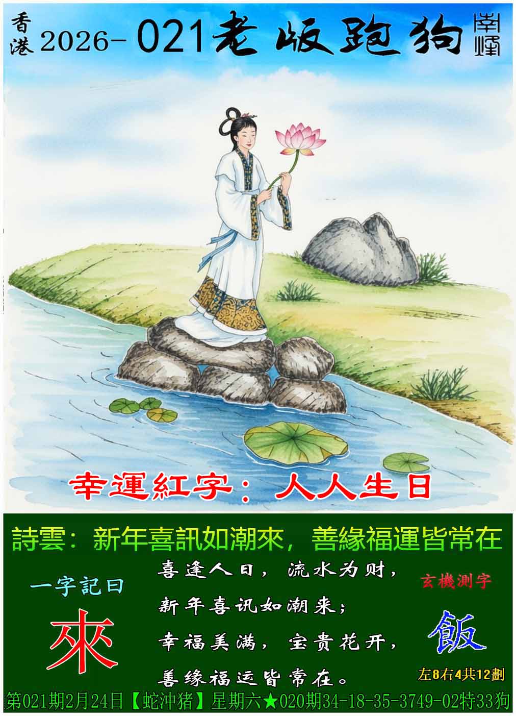 021期老版跑狗一字記之曰:【來】