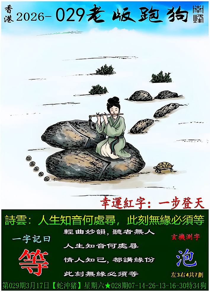 029期老版跑狗一字記之曰:【等】