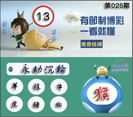 025期正版彩图挂:13 爆:猴 挂牌成语:永劫沉轮 挂牌出肖:羊龙牛虎猪狗