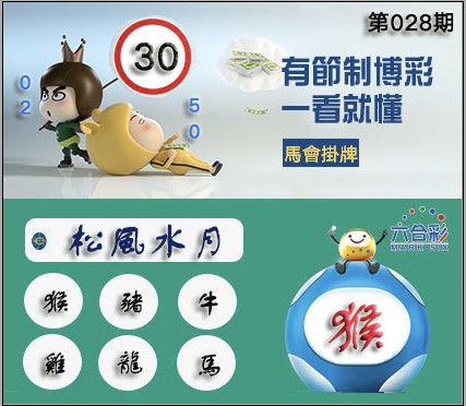 028期正版彩图挂:30 爆:猴 挂牌成语:松风水月 挂牌出肖:猴猪牛鸡龙马