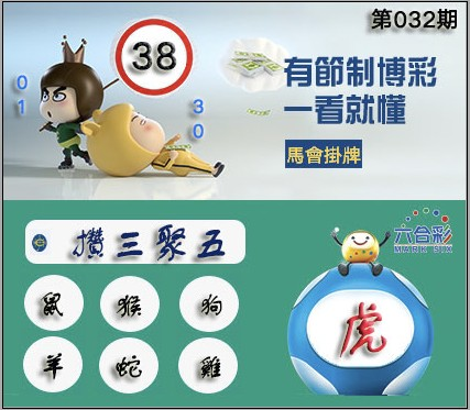 032期正版彩图挂:38 爆:虎 挂牌成语:攒三聚五 挂牌出肖:鼠猴狗羊蛇鸡