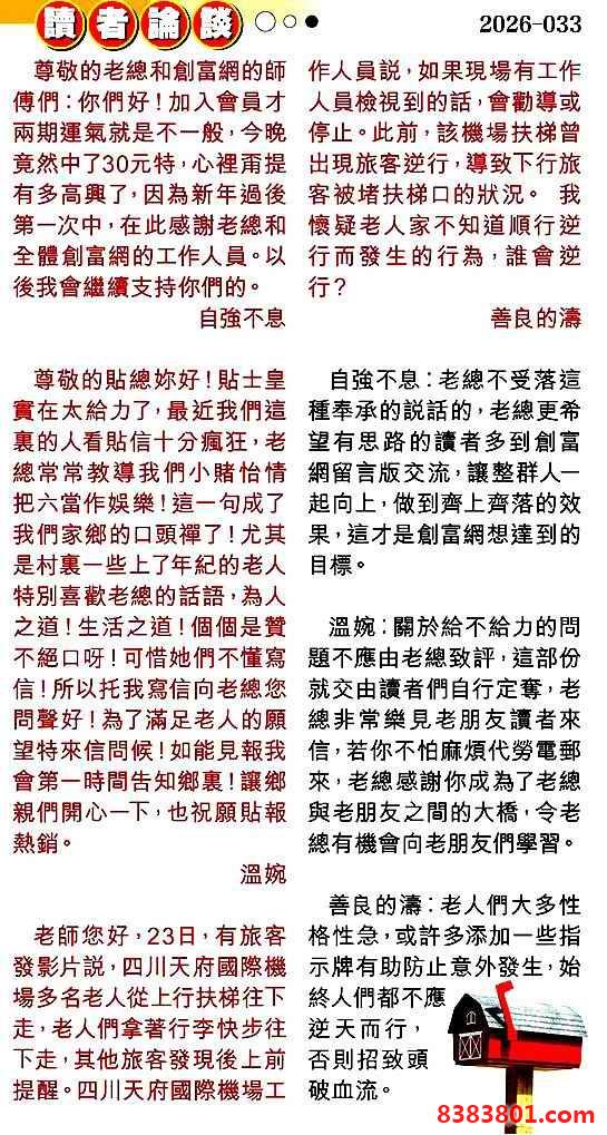 033期:彩民推荐贴信读者论坛